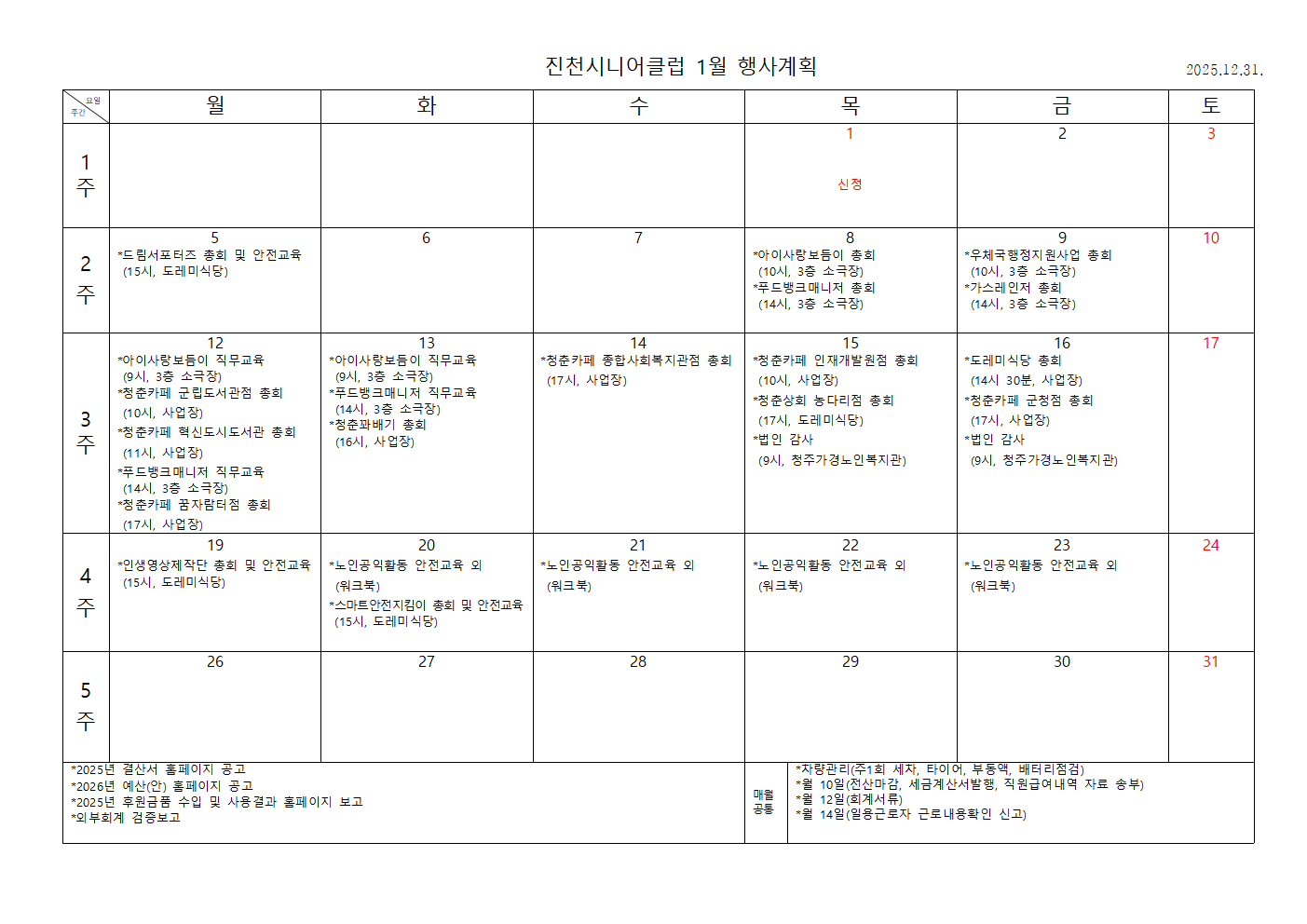 | 진천시니어클럽 1월 행사계획 안내 | |||